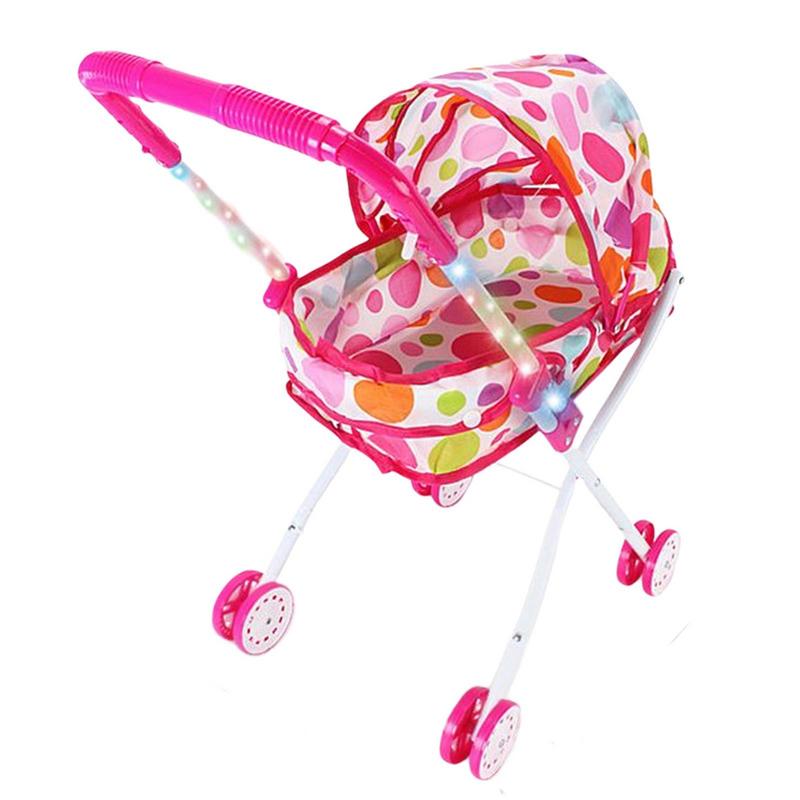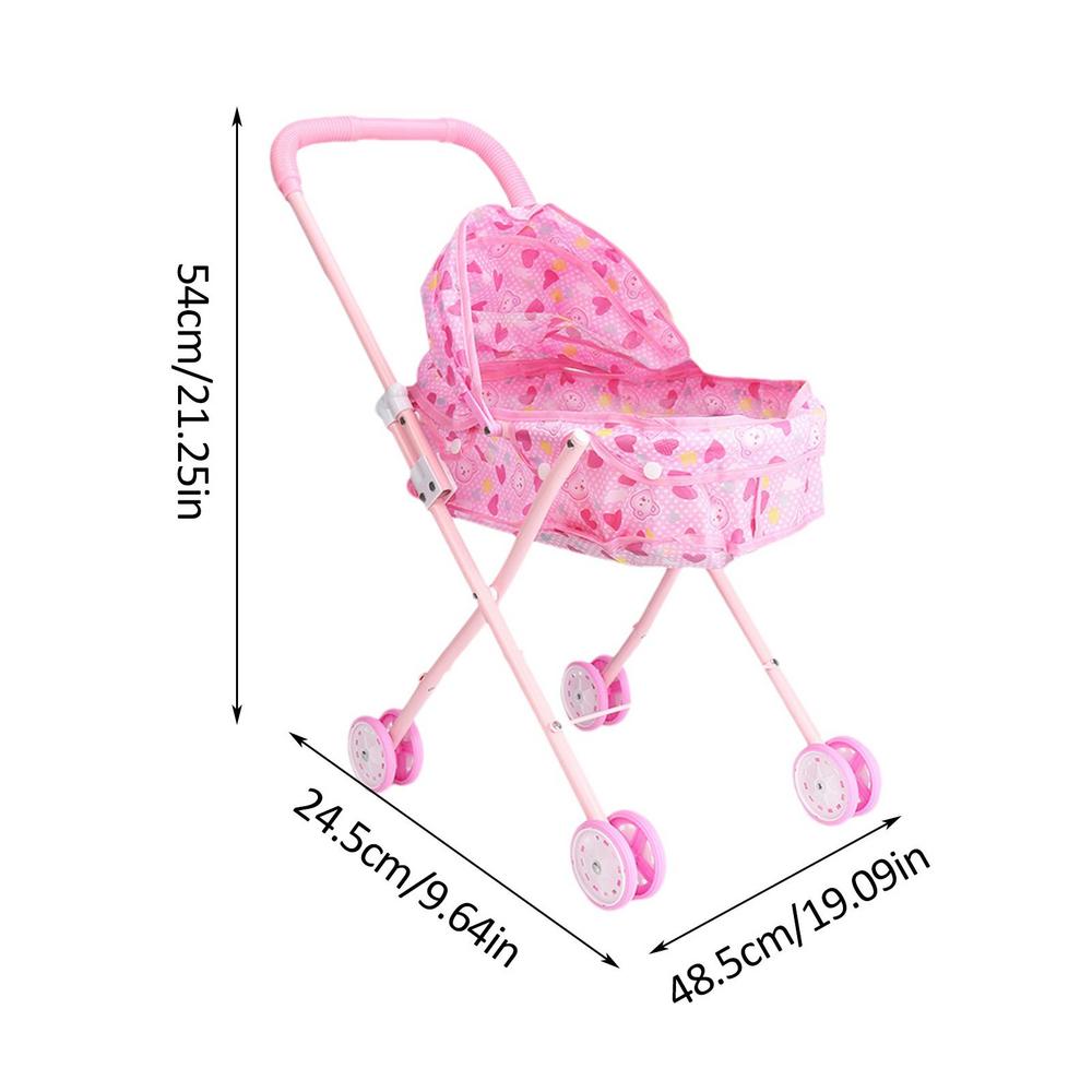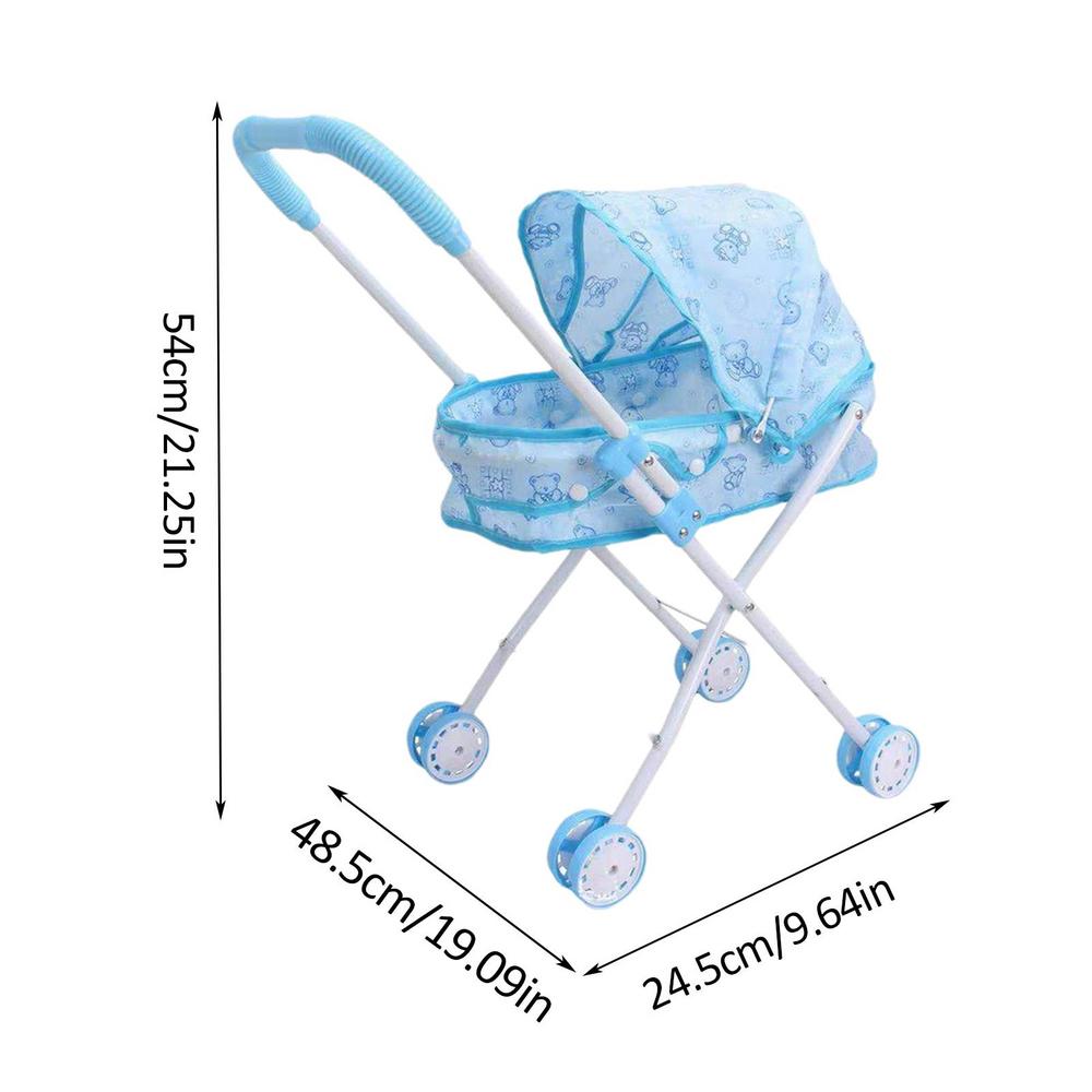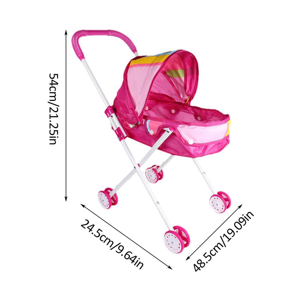 2 In 1 Baby Doll Stroller With Retractable Canopy And Soft Grip Handle Detachable Realistic Durable Carry Cot For Dolls Toys