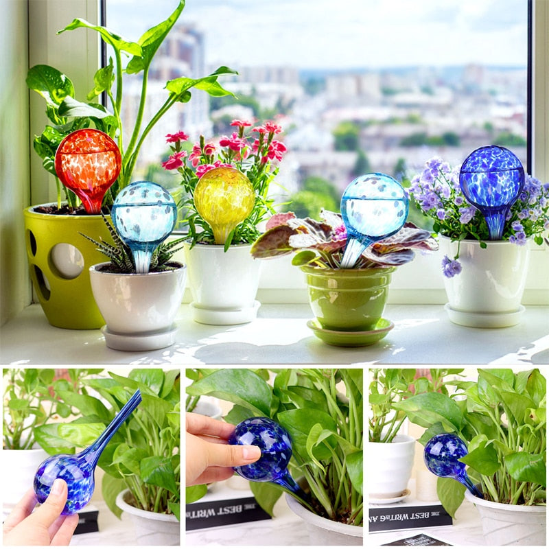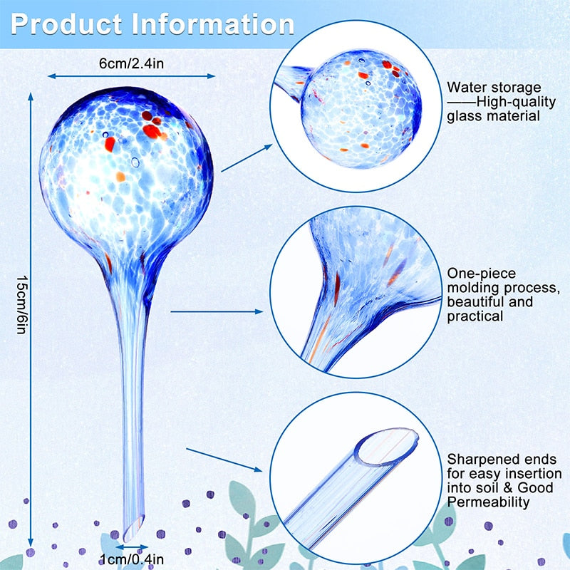6Pcs Indoor Plant Watering Globes Automatic Self Water Bulbs Aqua Water Globe Irrigation Device Decorative Hand-Blown Glass 15cm