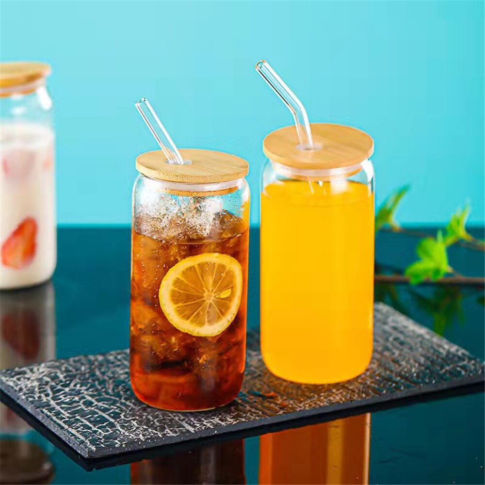 550ml/400ml Glass Cup With Lid and Straw Transparent Bubble Tea Cup Juice Glass Beer Can Milk Mocha Cups Breakfast Mug Drinkware