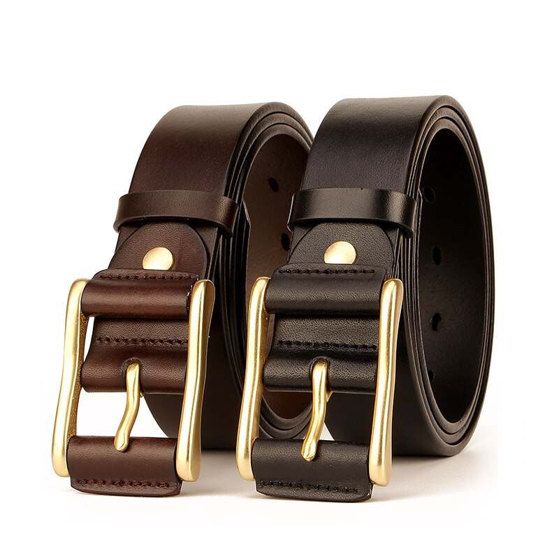 3.8CM Men High Quality Real Pure Cowskin Cowhide Genuine Leather Male Belt for Jeans Business Belts Copper Buckle Strap