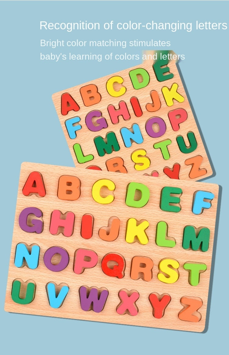 3D Children¡®s Wooden Toys Number Letter Shape Cognition Early Education Building Block Toy Jigsaw Puzzle Hand Grab Board Jigsaw