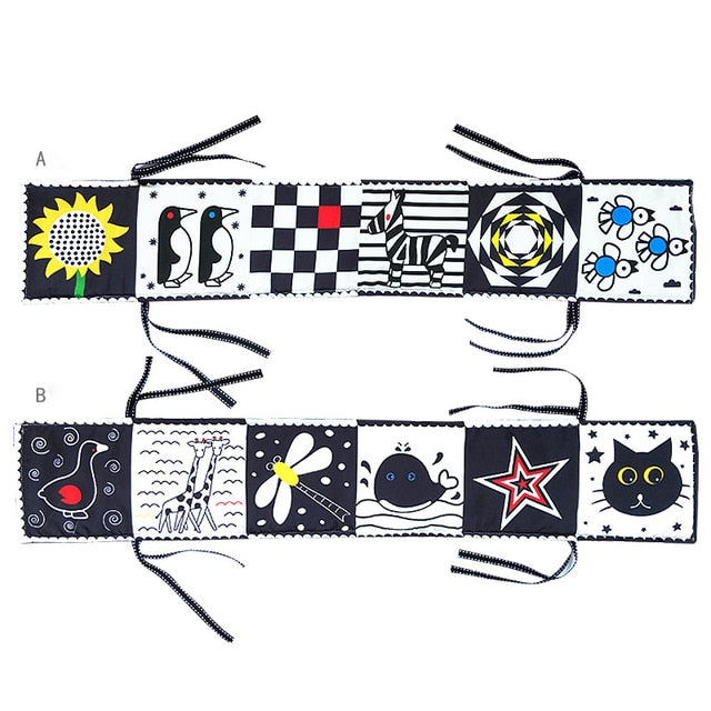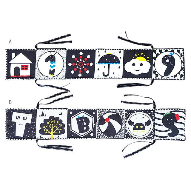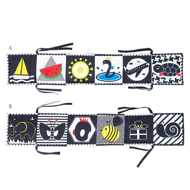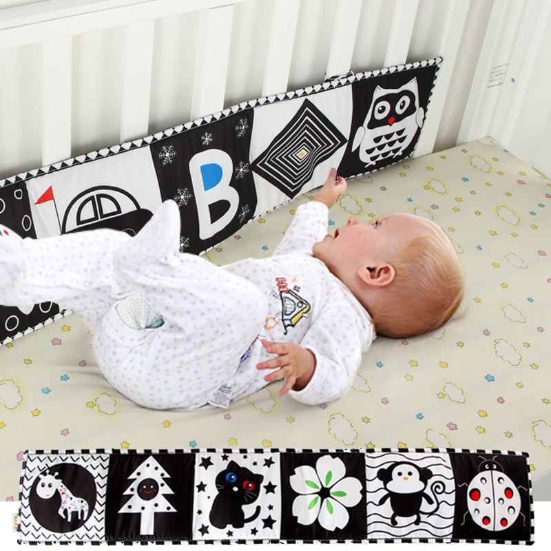 Neugeborene Krippe Stoßstange Stoffbuch Schwarz Weiß Kontrast Babyspielzeug Frühstimulation Krippe Spielzeug Ruhiges Buch Sensorisches Spielzeug für 0-36 Monate