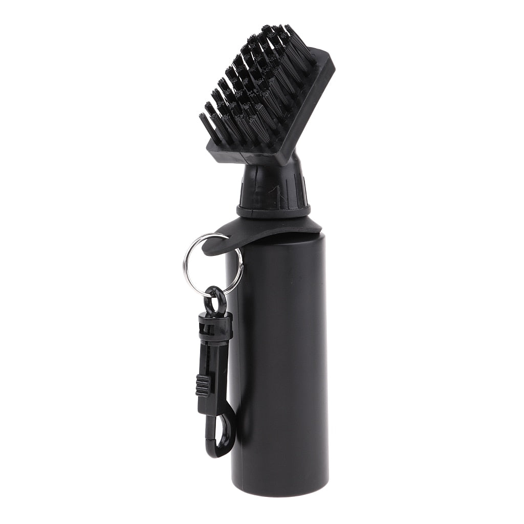 Protable Golf Club Groove Brush Kunststoff-Reinigungsbürste Golfreiniger mit Wasserflasche In sich geschlossene Wasserbürste – schwarzer Ball