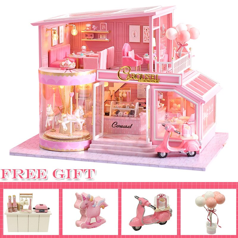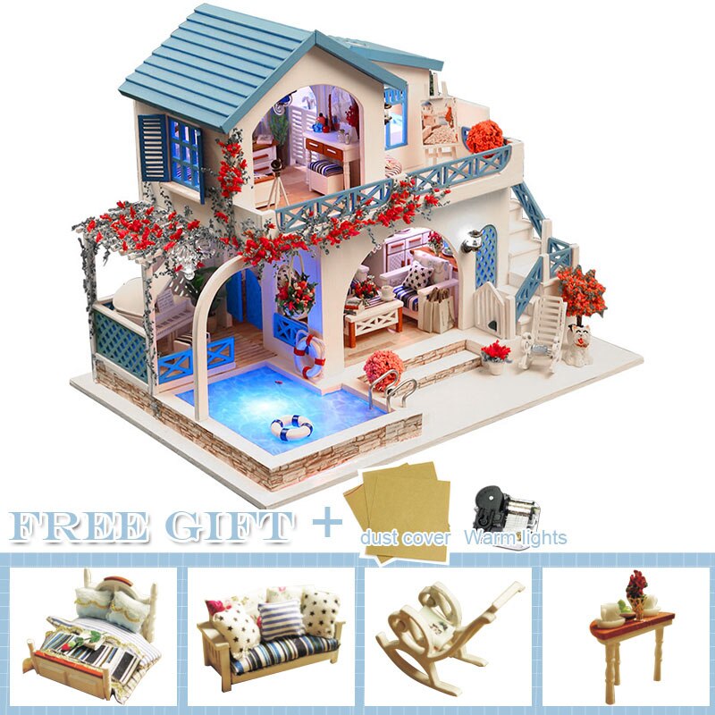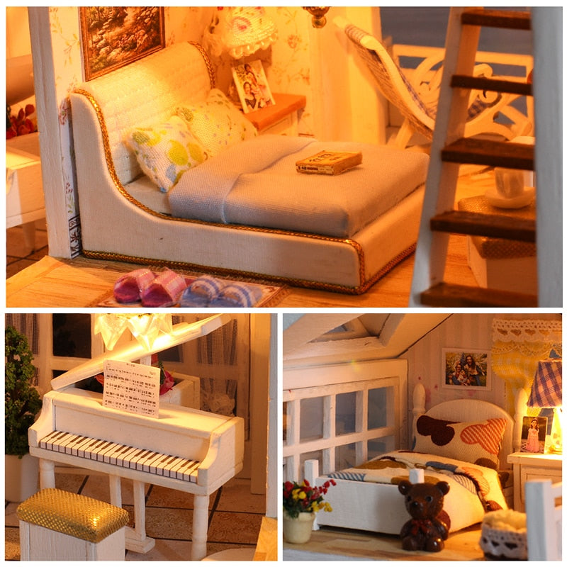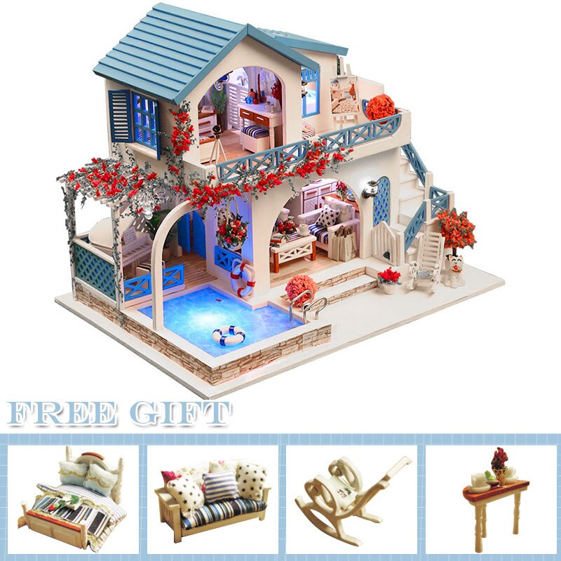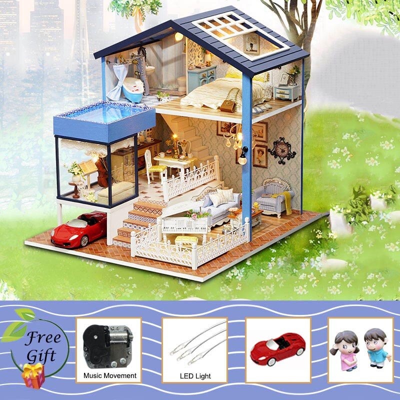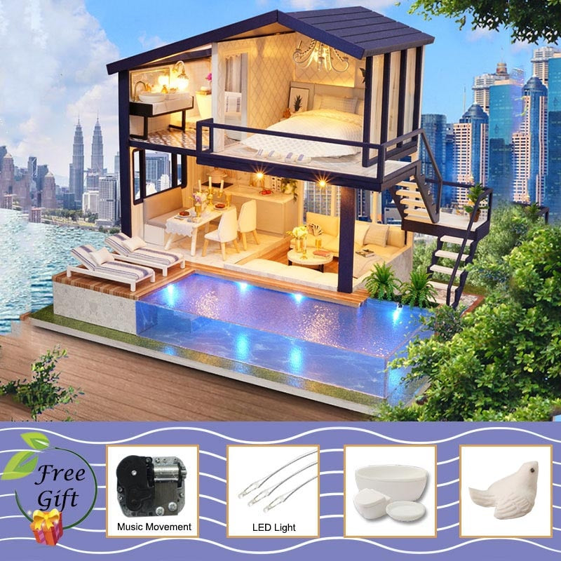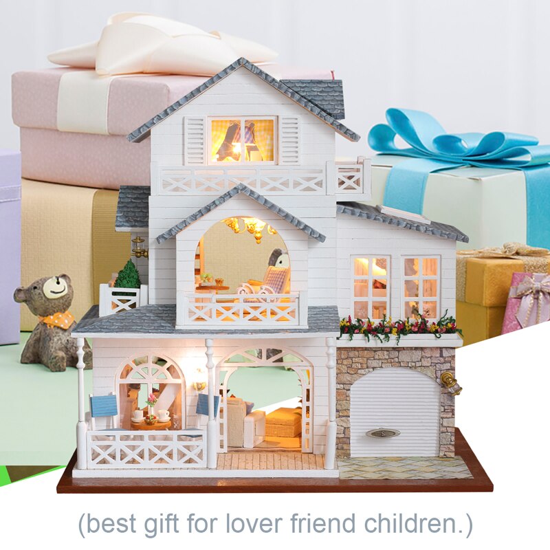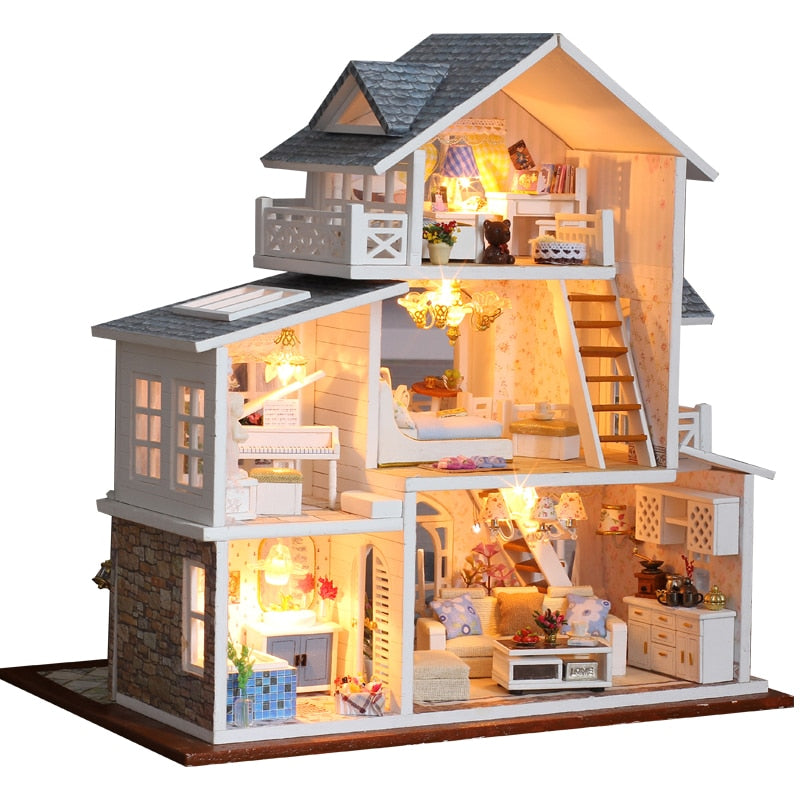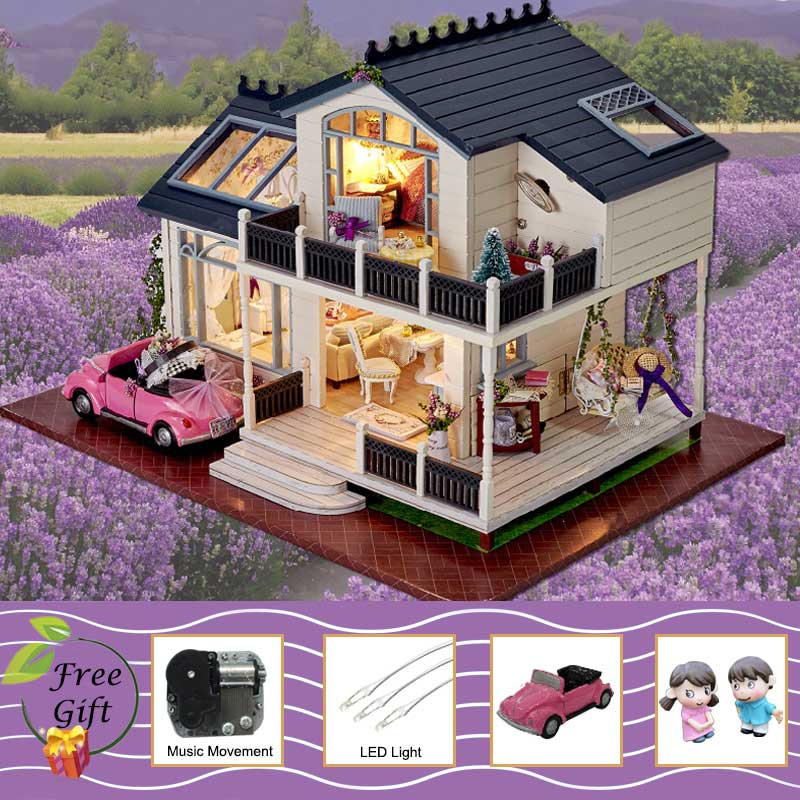 DIY Puppenhaus Holz Puppenhäuser Miniatur Puppenhaus Möbel Kit Casa Musik Led Spielzeug für Kinder Geburtstagsgeschenk