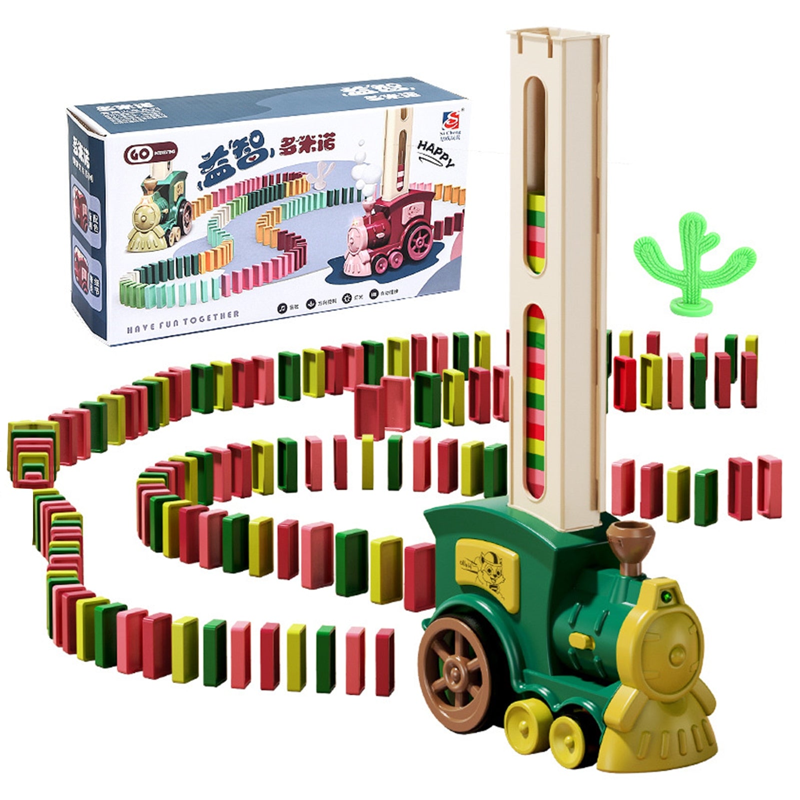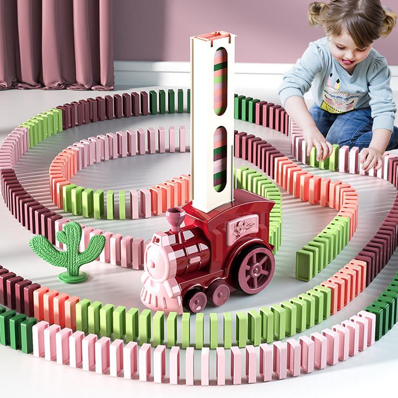 Domino-Zug-Spielzeug-Set Domino-Blöcke-Set Lustiger elektrischer Domino-Zug Bau- und Stapelspielzeug für Kinder Jungen Mädchen im Alter von 3-8 Jahren
