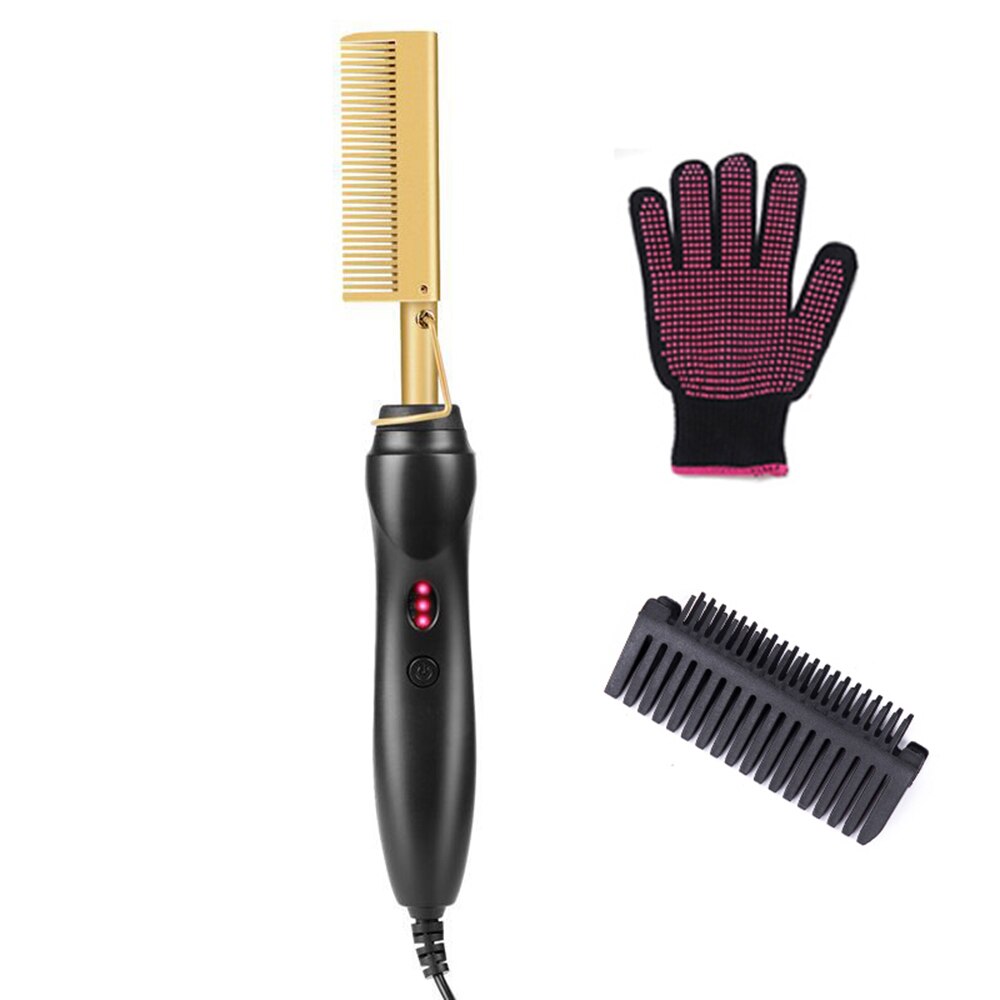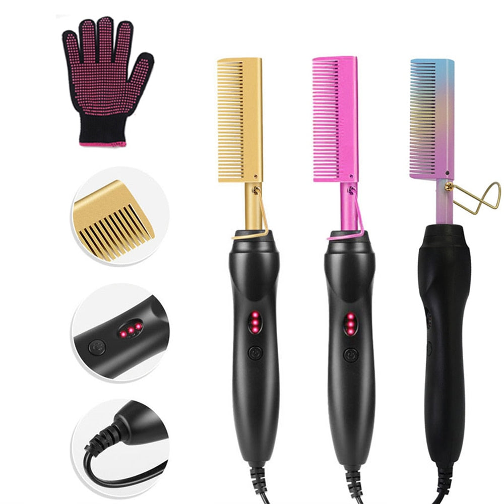 プロ用ホットコームストレートアイロンフラットアイロン電気加熱櫛ウェットドライヘアカーラーストレートスタイラーカーリングアイロン
